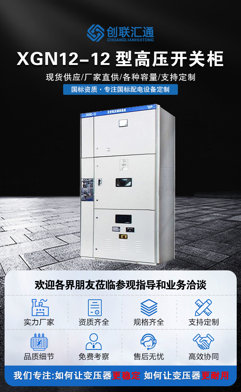 XGN2-12箱型固定式金屬封閉開關設備用于三相交流50Hz、3.6、7.2、12kV單母線及單母線分段系統中作為接受與分配電能之用,特別適合于頻繁操作的室內場合。