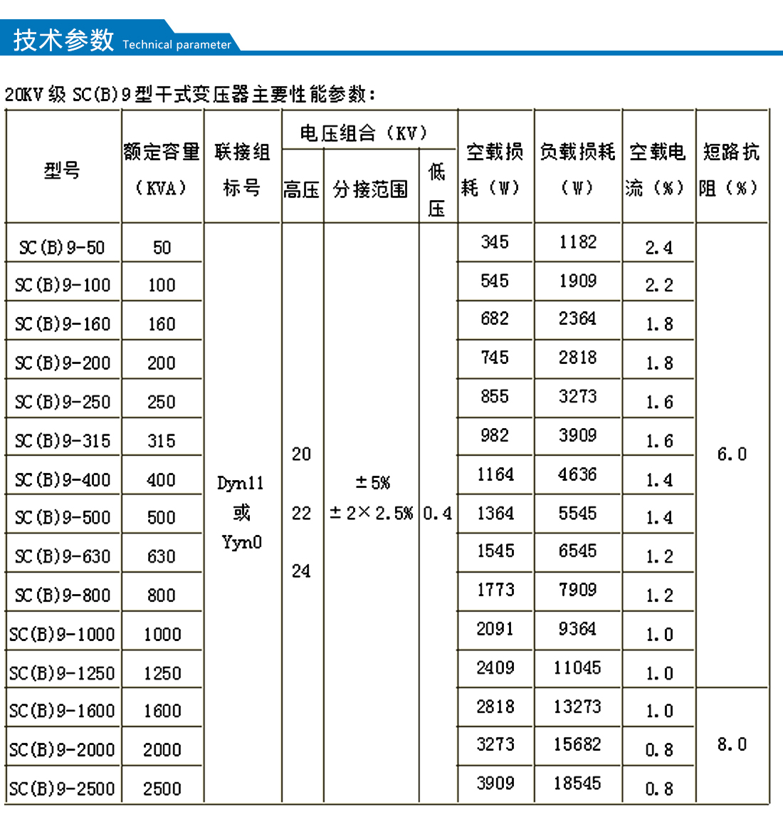 【額定容量】:30-2500kva      【額定電壓】:20kv