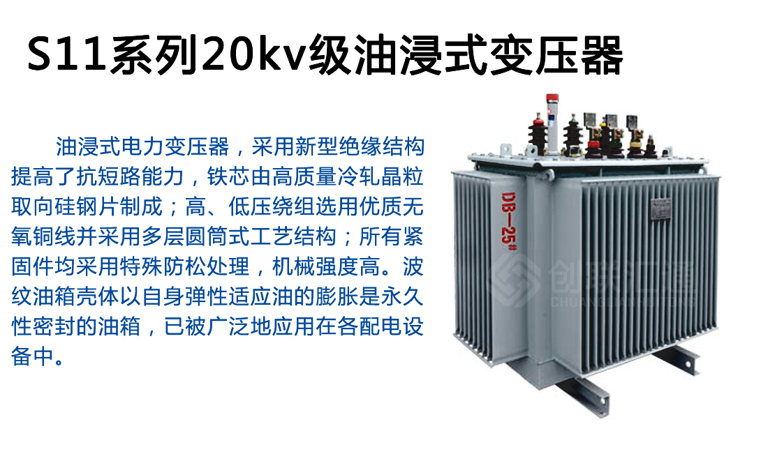d、油箱采用波紋片,它具有呼吸功能來補償因溫度變化而引起油的體積變化,所以該產品沒有儲油柜,顯然降低了變壓器的高度。